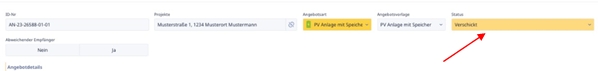 Nachdem wir den Mailausgang geschlossen haben und zurück zu den Angeboten nach oben gescrollt sind, sehen wir, dass sich der Status des Angebots von „neu“ zu „Verschickt“ geändert hat. Dadurch erkennen wir, dass wir das Angebot erfolgreich erstellt und an unserem Kunden verschickt haben.