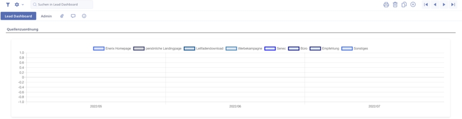 Im nächsten Abschnitt wird die Quellenzuordnung angezeigt. Hier erhalten wir eine Übersicht darüber, aus welchen Quellen die Leads stammen, sofern die Quelle im CRM angegeben wurde. Dies ermöglicht es uns, die Wirksamkeit unserer Marketing- und Vertriebskanäle zu bewerten und zu analysieren, welche Quellen die meisten Leads generieren.
