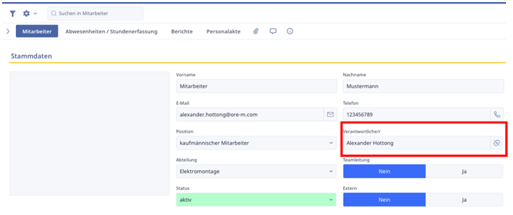 Wenn die Option „Nicht berechtigt“ ausgewählt wurde, dann ist die Person nur berechtigt, wenn sie als verantwortliche/r Person bei einem Mitarbeiter hinterlegt wurde
