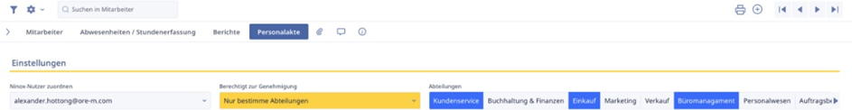 Wenn die Option „Nur bestimmte Abteilungen“ ausgewählt wurde, können wir die entsprechende Abteilung auswählen, für die der Mitarbeiter verantwortlich ist.