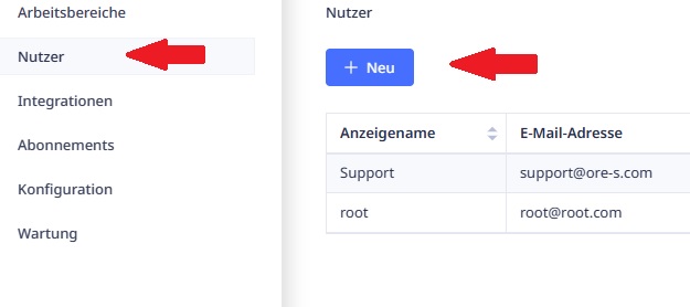 Nun gehen wir auf den Reiter Nutzer und drücken auf den Button „+ Neu“