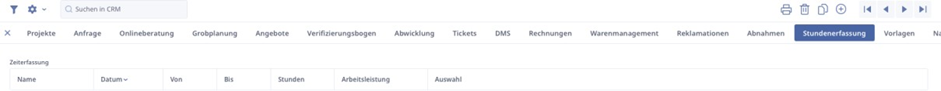 Innerhalb des Reiters Stundenerfassung werden uns alle Arbeitszeiten der einzelnen Usern ausgewiesen, welche auf dieses Projekt gebucht worden sind.