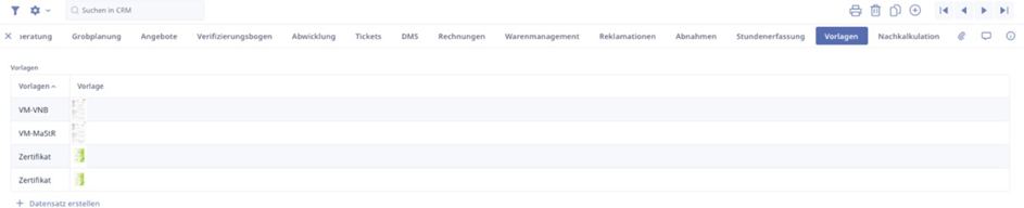 Innerhalb des Reiters Vorlagen haben wir die Möglichkeit diverse Projektspezifische Dokumente ausgeben zu lassen. Dabei können folgende Dokumente generiert werden