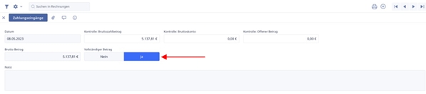 Wenn der Kunde jedoch nicht den vollen Betrag bezahlt hat, können wir den Betrag manuell eingeben und den Restbetrag im Feld „Kontrolle: offener Betrag“ sehen.
