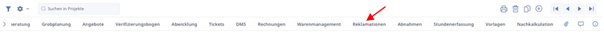 <figure><img src="https://content.gitbook.com/content/SIdLPbn7iXWUEa1DmgBn/blobs/ZuB9RaX5Kjxzw97kVaW4/image.png" alt=""><figcaption><p>Reklamation in der Projektebene erstellen</p></figcaption></figure>