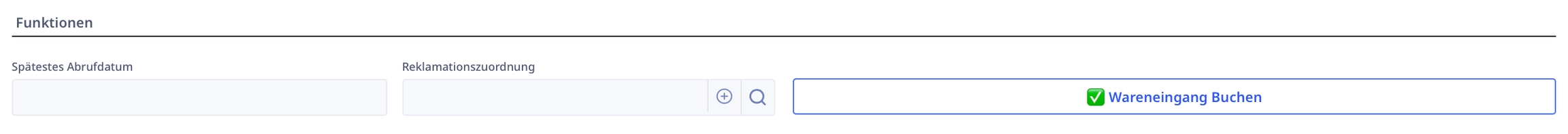 Um eine Bestellung einzubuchen navigieren Sie innerhalb des ERP´s in den Reiter Bestellung, wählen Sie die gewünschte Bestellung aus und klicken sie unter Funktionen auf den Button "Wareneingang Buchen".